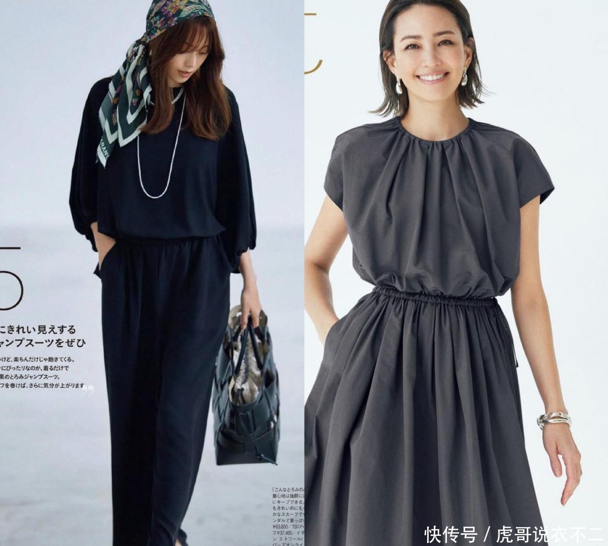 中年女性还不错试一试深色的连衣裙,打造出显瘦显气质的成果,如果是玄色的裙装,那么还会很有气场。
